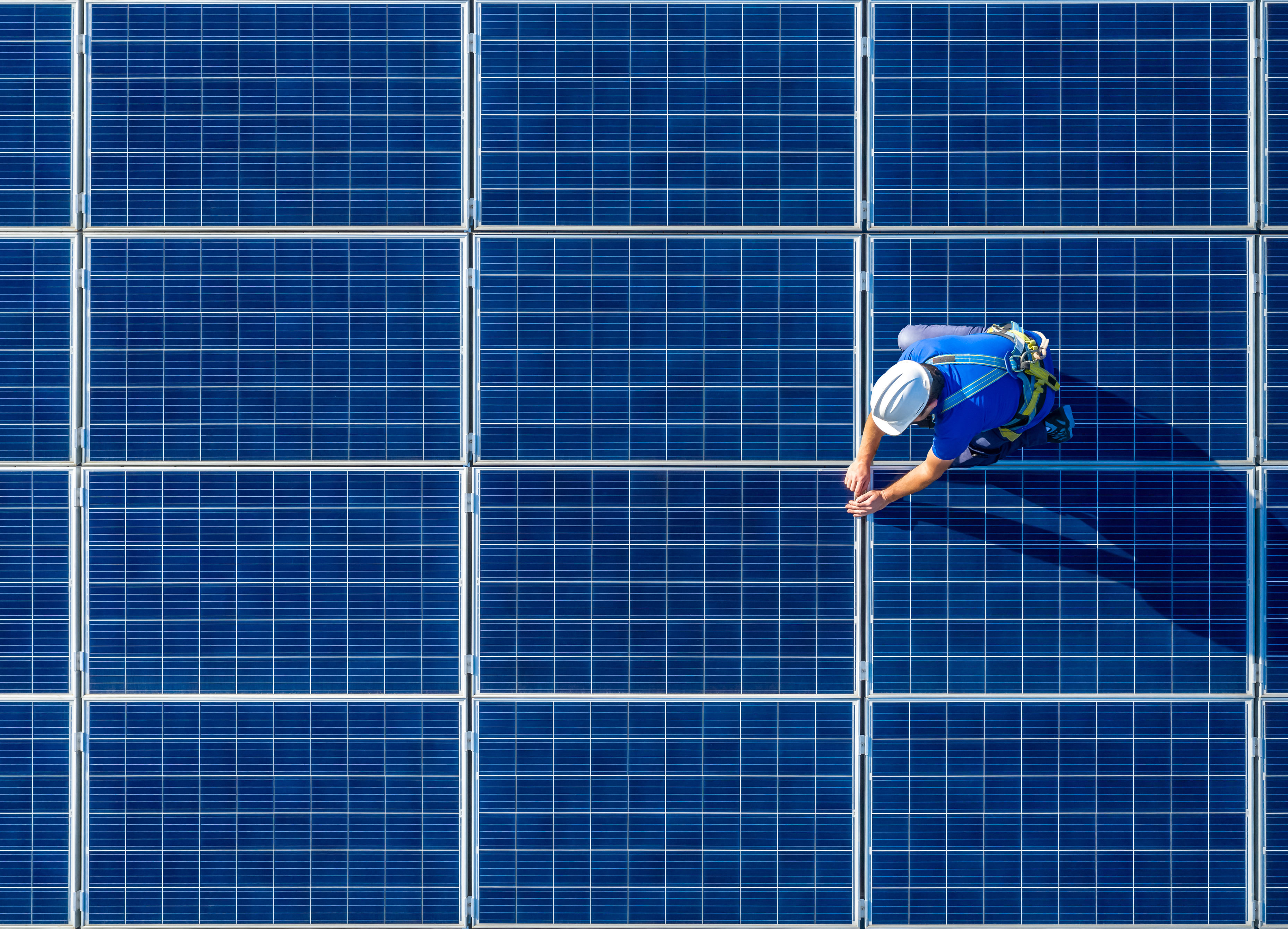 Rows of solar panels covering ~60% of the roof